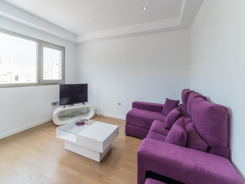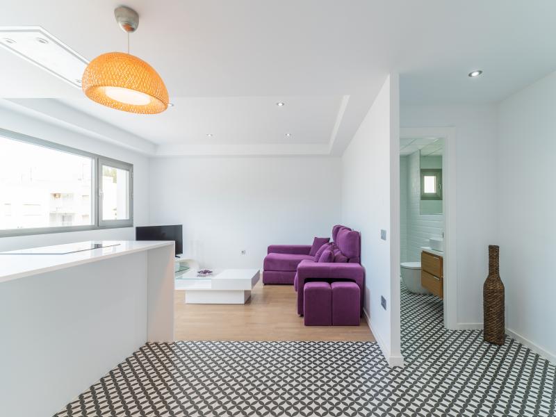 El salón abierto a cocina disponse de un cómodo sofá que se puede abrir conbiertiendose en cama.